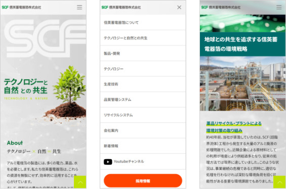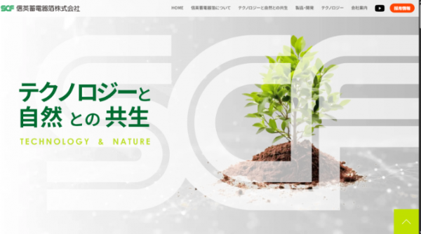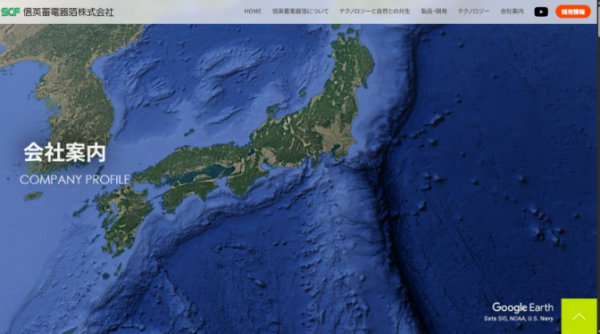 | 説明 | 信英蓄電器箔株式会社様の公式サイトの全面リニューアルを担当させていただきました。 テクノロジーと自然との共生というテーマが際立つように構成し、信英蓄電器箔株式会社様の世界最高水準の製造技術が視覚的に伝わるよう工夫しました。また、拠点の位置を直感的に示すためにGoogle Earthのズームアニメーションを取り入れ、マップや製造工程のイラストも、よりわかりやすく現代的なデザインに刷新しています。 |